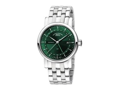 Mühle Glashütte Teutonia II GMT Automatik Edelstahl 41mm grünes Zifferblatt Metallband