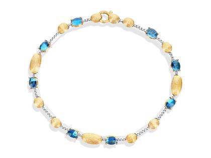 Armband aus 750/- Gelbgold, mattiert, Brillanten 0,2 ct TW (G) vsi, 8 London Blue Topas insgesamt 3,2 ct, 17,8 cm lang