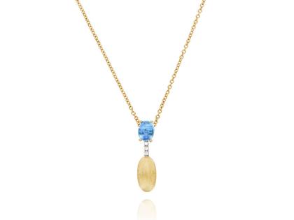 Collier in 750/- Gelbgold, Brillanten zus. 0,01 ct TW (G) vsi , 1 London Blue Topas 0,4 ct, 42,5 cm lang