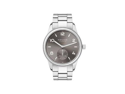 Nomos Glashütte Club Sport neomatik 39 Smoke Automatik Edelstahl graues Zifferblatt Metallband Glasboden