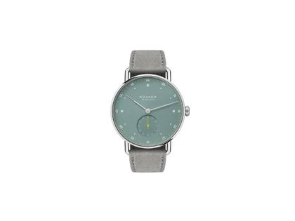 Der Salbeiton des Zifferblatts dieser Handaufzugsuhr im Design von Mark Braun erinnert an die offene See ebenso wie an die Patina von Kupferdächern. Großstadt mit einer Brise Meeresluft, tragbar gemacht in einem Edelstahlgehäuse mit geschmeidigen Bügelanstößen und gewölbten Saphirglas. Metro 33 sage ist wasserdicht bis 5 bar und wird vom NOMOS-Manufakturkaliber Alpha angetrieben.