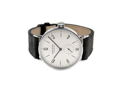 Nomos Tangomat Datum Automatik Edelstahl 38mm weißes Zifferblatt schwarzes Lederband 602 Full Set mit Garantie Refurbished aus erster Hand