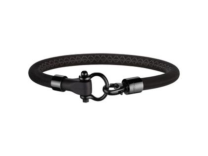 Armschmuck aus Kautschuk, schwarz, beweglicher Zierring, Edelstahl-Karabinerverschluss Schwarz-DLC beschichtet, 7,9 mm im Durchmesser