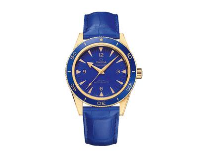 Das 41-mm-Gehäuse besteht aus edlem 18 K Gelbgold und wird von einer blauen Keramiklünette mit Tauchskala aus OMEGA Ceragold™ gekrönt. Ein besonderer Blickfang ist das tiefblaue Zifferblatt aus echtem Lapislazuli – ein bezaubernder Edelstein, der jeder Uhr ein einzigartiges Gesicht verleiht. Ergänzt wird das Erscheinungsbild durch Zeiger aus 18 K Gelbgold, gefüllt mit „Retro“-Super-LumiNova für optimale Ablesbarkeit.