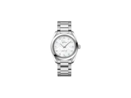 Die Seamaster Aqua Terra für Damen ist von Diamanten umgeben und ein wahrer Ausdruck von Eleganz. Dieses Modell mit einem symmetrischen 28-mm-Gehäuse aus Edelstahl verfügt über ein weißes Perlmuttzifferblatt und 12 diamantbesetzte Indizes in rhodinierten Fassungen. Die Zeiger sind ebenfalls rhodiniert und der Gehäuseboden ist mit dem OMEGA Seepferdchen auf einem gewellten Untergrund versehen. Die Uhr wird von einem integrierten Edelstahlarmband am Handgelenk gehalten und von dem OMEGA Kaliber 4061 angetrieben.
