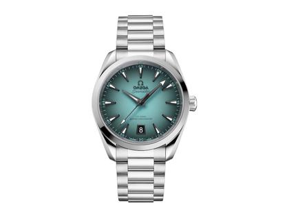 Die Seamaster Aqua Terra ist eine Hommage an OMEGAs großes maritimes Erbe. Dieses 41-mm-Modell verfügt über ein symmetrisches Gehäuse aus Edelstahl und eine faszinierende, vom Meer inspirierte Farbe. Das türkis lackierte Zifferblatt ist mit einem schwarzen Farbverlauf akzentuiert und verfügt über facettierte Zeiger und Stundenindizes mit grauer PVD-Beschichtung und weißer Super-LumiNova. Das OMEGA Logo und das Datumsfenster sind ebenfalls grau PVD-beschichtet, passend zu dem gestempelten Schriftzug in Grau und Türkis. Das integrierte Metallarmband ist gebürstet und poliert und mit dem einfachen OMEGA Komfortverschluss ausgestattet, das den Tragekomfort am Handgelenk gewährleistet. Das Innere dieser Uhr wird von dem OMEGA Co-Axial Master Chronometer Kaliber 8900 angetrieben, das vom Eidgenössischen Institut für Metrologie (METAS) nach den höchsten Standards der Branche zertifiziert wurde.