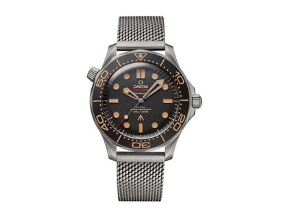 Diese Seamaster mit einem Durchmesser von 42 mm ist identisch mit der Uhr von 007 in „Keine Zeit zu sterben“, besteht aus robustem und doch leichtem Titan Grade 2 und weist einen Lünettenring sowie ein Zifferblatt aus braunem Aluminium auf. Dank der Wölbung des Saphirglases besitzt der Zeitmesser eine etwas schlankere Silhouette als die standardmäßigen Diver 300M-Modelle. Am Handgelenk gehalten wird er von einem Milanaise-Armband aus Titan Grade 2 mit einer innovativen, verstellbaren Schließe. Die 007-Edition der Diver wird von OMEGAs Co-Axial Master Chronometer Kaliber 8806 angetrieben, das in Sachen Präzision, chronometrische Leistung und - natürlich - magnetische Widerstandskraft den höchsten Standards der Industrie entspricht.