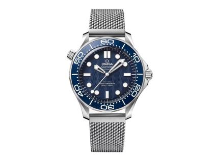 Die 2022 zum 60-jährigen Jubiläum von James Bond lancierte Seamaster Diver 300M aus Edelstahl mit 42 mm Durchmesser besitzt ein blaues, anhand von Oxalsäure eloxiertes Aluminiumzifferblatt mit per Laser eingravierten Wellen, das an die von James Bond 1995 in GoldenEye getragene Seamaster Diver 300M angelehnt ist. Anstelle des traditionellen umgedrehten Dreiecks befindet sich auf der Tauchskala eine 60. Die ikonische Eröffnungssequenz des Films mit der Silhouette von Bond und dem sich drehenden Gewehrlauf ist auf dem Gehäuseboden unter einem mit einer mikrostrukturierten Metallisierung versehenen Saphirglas zu sehen. Der animierte „Moiré“-Effekt ist mit der Drehung des Lollipop-Sekundenzeigers verbunden. Der Metallic-Look wird durch ein gebürstetes Edelstahlarmband im gleichen eleganten Milanaise-Stil wie Bonds Titanuhr in Keine Zeit zu sterben ergänzt. Angetrieben wird die Uhr von OMEGAs Co-Axial Master Chronometer Kaliber 8806. Die Uhr wird in einer blauen, hölzernen Box mit dem originalen Muster der Diver 300M und den drei Punkten aus der klassischen Eröffnungssequenz der Bondfilme geliefert, die mit einem geheimen Drücker auf der rechten Seite versehen ist.