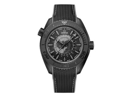Die Markteinführung der Planet Ocean Kollektion im Jahr 2005 stand im Zeichen von OMEGAs maritimem Erbe. Heute ist die Kollektion eine Hommage an das Taucheruhrenerbe der Marke – mit modernem Stil und fortschrittlicher Präzision. Dieser Worldtimer im 45,5 mm-Format besitzt ein gebürstetes Gehäuse und eine Lünette aus schwarzer Keramik mit einer per Laser eingravierten Tauchskala in poliertem positivem Relief. In der Mitte des Zifferblatts hat OMEGA auf einer Oberfläche aus Titan Grade 5 eine Vision der Erde abgebildet. Diese topographische Karte aus Sicht des Nordpols entsteht durch Laserbearbeitung und grauen Lack. Sie wird von einer 24-Stunden-Anzeige eingerahmt, die unter transparentem Hesalitglas in Tag- und Nachtabschnitte eingeteilt ist. Der äußere Teil des Zifferblatts verfügt über eine schwarze DLC-Beschichtung und wird durch ein laserbearbeitetes, poliertes Wabenmuster abgerundet. Das Zifferblatt besitzt diamantgebürstete Indizes mit grauer Super-LumiNova-Füllung und einen Außenring aus grauem Lack. Verschiedene Städte aus der ganzen Welt umranden das Zifferblatt und seinen Außenring, darunter auch Bienne, die Heimatstadt von OMEGA. Die Zeiger mit grauer PVD-Beschichtung sind ebenfalls mit grauer Super-LumiNova gefüllt. Dieser Worldtimer wird an einem integrierten Armband aus schwarzem strukturiertem Kautschuk mit türkisfarbenen Nähten getragen, das über eine Faltschließe aus Keramik und keramisiertem Titan verfügt. Angetrieben wird die Uhr vom OMEGA Co-Axial Master Chronometer Kaliber 8938, das durch den Saphirglasboden sichtbar ist.