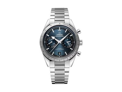 Die Speedmaster ist einer der ikonischsten Zeitmesser der Marke OMEGA. Der Zeitmesser war Teil aller sechs Mondlandungen und repräsentiert auf eindrucksvolle Weise den Abenteuer- und Pioniergeist der Marke. Dieses 40,5-mm-Modell, das von dem legendären Original aus dem Jahr 1957 inspiriert ist, besitzt ein Gehäuse aus Edelstahl und ein blaues Zifferblatt mit rhodinierten Stundenindizes und „Broad-Arrow“-Zeigern, die allesamt mit Super-LumiNova versehen sind. Bei 6 Uhr befindet sich ein Datumsfenster, bei 9 Uhr ein Hilfszifferblatt für die kleine Sekunde und bei 3 Uhr ein Hilfszifferblatt mit 12-Stunden- und 60-Minuten-Chronographenzählern. Die gebürstete Lünette ist mit einer geschwärzten Tachymeterskala versehen, während der Gehäuseboden die Gravur „Speedmaster ‘57“ aufweist. Das flache Saphirglas wurde beidseitig entspiegelt. Die Uhr wird von einem passenden Armband mit OMEGAs patentiertem Komfortverschluss am Handgelenk gehalten und von dem OMEGA Co-Axial Master Chronometer Kaliber 9906 mit Handaufzug angetrieben.