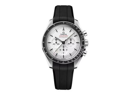 Omega Speedmaster Moonwatch Professional Chronograph Handaufzug Edelstahl 42mm weißes Zifferblatt schwarzes Kautschukband