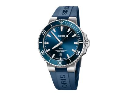 Oris Aquis Date Automatik Edelstahl 43,5mm blaues Zifferblatt blaues Kautschukband