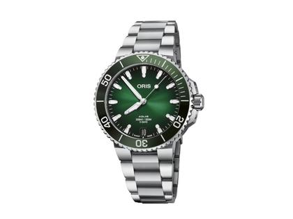 Oris Aquis Date Calibre 400 Automatik Edelstahl 41,5mm grünes Zifferblatt Metallband