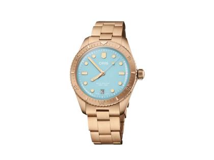 Mit der Divers Sixty-Five Cotton Candy will Oris ein Zeichen für einen Neubeginn setzen und Hoffnung machen. Denn dieses neue Modell hat ein einfaches Ziel – ein Lächeln ins Gesicht zu zaubern. Dank der Kombination von farbenfrohen Zifferblättern und einem Gehäuse aus Bronze erwecken sie ein Gefühl von Wärme und Optimismus. Sie greift die komplett bronzefarbene Kombination aus Gehäuse, Lünette, Krone und Armband auf, die Oris für die Hölstein Edition 2020 kreiert hatte, und peppt sie mit einer Zifferblatt-Farbenpalette in Sky Blue, Wild Green oder Lipstick Pink auf. Das 38 mm große Gehäuse, macht sie zur idealen Unisexuhr, denn die Bronze sowie die Zifferblätter erzählen ihre ganz eigene Geschichte.