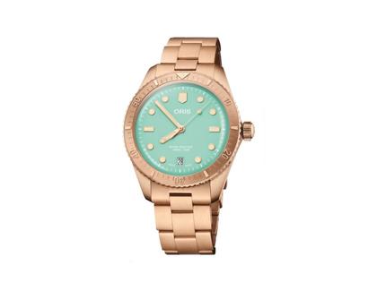 Mit der Divers Sixty-Five Cotton Candy will Oris ein Zeichen für einen Neubeginn setzen und Hoffnung machen. Denn dieses neue Modell hat ein einfaches Ziel – ein Lächeln ins Gesicht zu zaubern. Dank der Kombination von farbenfrohen Zifferblättern und einem Gehäuse aus Bronze erwecken sie ein Gefühl von Wärme und Optimismus. Sie greift die komplett bronzefarbene Kombination aus Gehäuse, Lünette, Krone und Armband auf, die Oris für die Hölstein Edition 2020 kreiert hatte, und peppt sie mit einer Zifferblatt-Farbenpalette in Sky Blue, Wild Green oder Lipstick Pink auf. Das 38 mm große Gehäuse, macht sie zur idealen Unisexuhr, denn die Bronze sowie die Zifferblätter erzählen ihre ganz eigene Geschichte.
