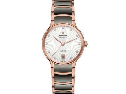 Rado Centrix Diamonds Automatik Edelstahl Roségold-PVD 35mm weißes Zifferblatt graues Keramikband