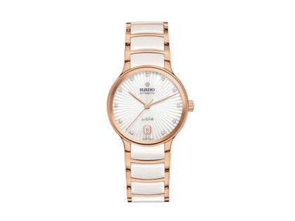 Rado Centrix Diamonds Automatik Edelstahl Roségold-PVD 35mm weißes Zifferblatt mit Brillanten Metallband