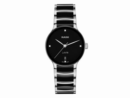 Die klassische Centrix Quarz Diamonds wurde nicht nur technisch, sondern auch ästhetisch überarbeitet. Beim neuen Modell reicht das abgerundete Saphirglas bis hin zum Rand. Außerdem geht das gewölbte Gehäuse nahtlos in den geschwungenen Kristallrand über. Die überarbeiteten Bandanstöße am Gehäuse und das Armband aus poliertem Edelstahl mit Mittelgliedern aus schwarzer Hightech-Keramik runden das Gesamtbild dieses ikonischen Zeitmessers perfekt ab. Das schwarz lackierte Zifferblatt mit 4 Diamanten wird durch das per Druck aufgetragene Jubilé-Logo noch besser zur Geltung gebracht und ist perfekt auf die rhodiumfarbenen Zeiger abgestimmt. Dank der PreciDrive- und HeavyDrive-Technologie im R073 Quarzwerk zeichnet sich die Uhr durch eine größere Genauigkeit und Stoßfestigkeit aus. Die Uhr ist bis zu einer Tiefe von 50 m wasserdicht.