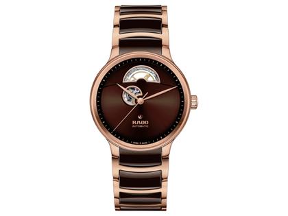 Rado Centrix Open Heart Autoatik Edelstahl roségold PVD 39,5mm braunes Zifferblatt Keramik- & Edelstahlband bicolor