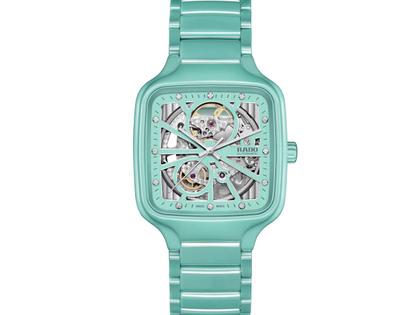 Rado True Square Open Heart Automatik Keramik 38mm türkises Zifferblatt türkises Keramikband