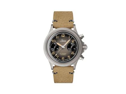 Sinn Spezialuhren 356 FLIEGER Klassik AS E Chronograph Automatik Edelstahl 38,5mm graues Zifferblatt beiges Lederband