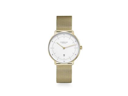 Sternglas Naos XS Quarz Edelstahl PVD-Gelbgold 33mm weißes Zifferblatt Metallband