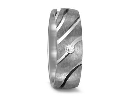 Titanring matt mit polierten Rillen, mit 1 Brillant 0,05 ct, 7 mm breit