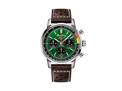 Breitling Top Time B01 Ford Mustang Automatik Edelstahl 41mm grünes Zifferblatt braunes Lederband