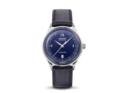 Die Union Glashütte Noramis Kollektion steht für die Eleganz der 50er und 60er Jahre. Das Zifferblattdesign dieser Uhr ist an historische Sektorenzifferblätter angelehnt. Deren besondere Aufteilung trennt die Stunden-, Minuten und Sekundenanzeige voneinander. Bei der Noramis Datum wird dies durch die klar strukturierten weißen Linien betont, die in Kombination mit dem blauen Zifferblatt an Blaupausen erinnern, die einst zur Vervielfältigung technischer Zeichnungen dienten. Das extrem gewölbte, beidseitig entspiegelte Saphirglas gibt den Blick frei auf vernickelte, Super-LumiNova-beschichtete Stunden- und Minutenzeiger sowie eine Datumsanzeige bei 6 Uhr. Der elegante Zeitmesser mit dem mechanischen Herzen ist zudem wasserdicht bis zu einem Druck von 10 bar.