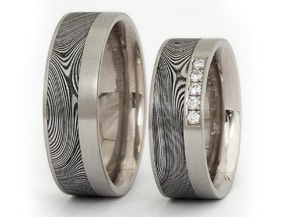 Wagebundt Joachim Bartz Trauringpaar Damaszenerstahl Palladium mit Brillanten 0,075ct