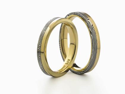 Wagebundt Joachim Bartz Trauringpaar Damaszenerstahl Gelbgold